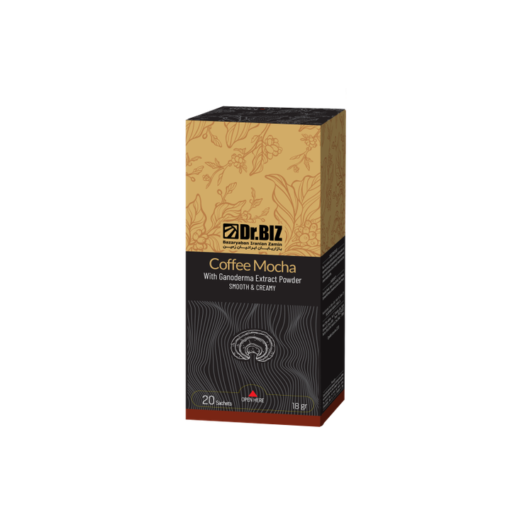 حاوی 20 ساشۀ 18 گرمی قهوه موکا غنی شده با قارچ گانودرما لوسیدوم